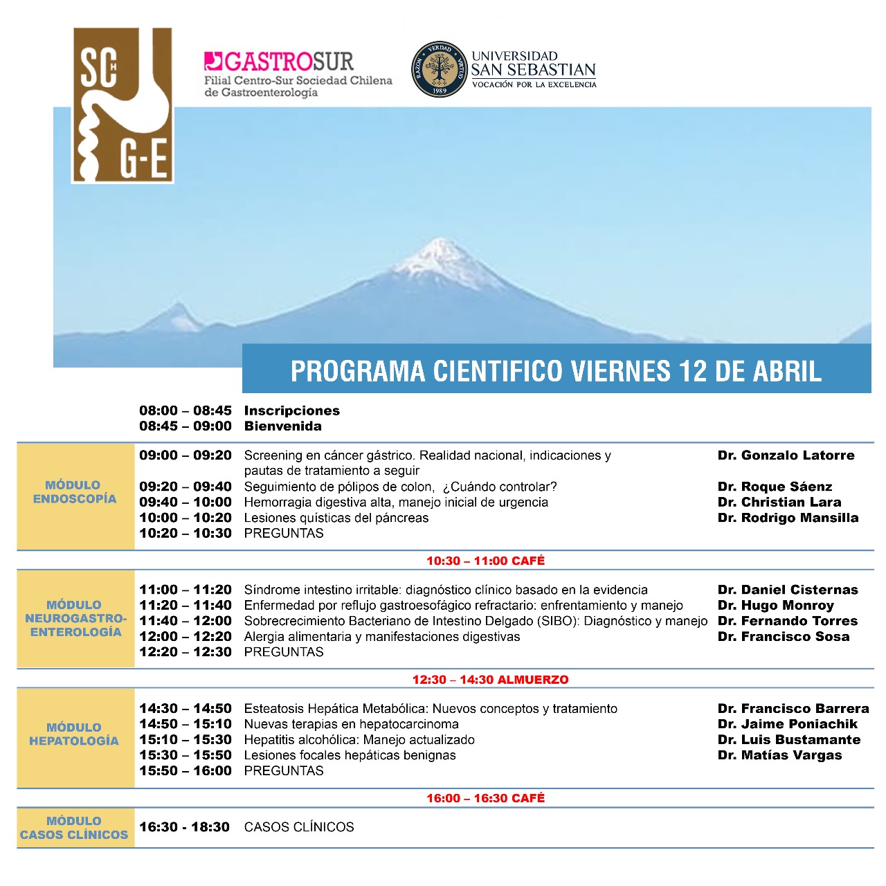 El Dr. Rodrigo Mansilla, médico gastroenterólogo del Hospital de Puerto Montt, ex alumno y docente de la Universidad San Sebastián, explica que es un curso abierto con temas que abordan cuadros clínicos de la neurogastroenterología, enfermedad inflamatoria intestinal, enfermedades pancreáticas y temas endoscópicos, entre otros.